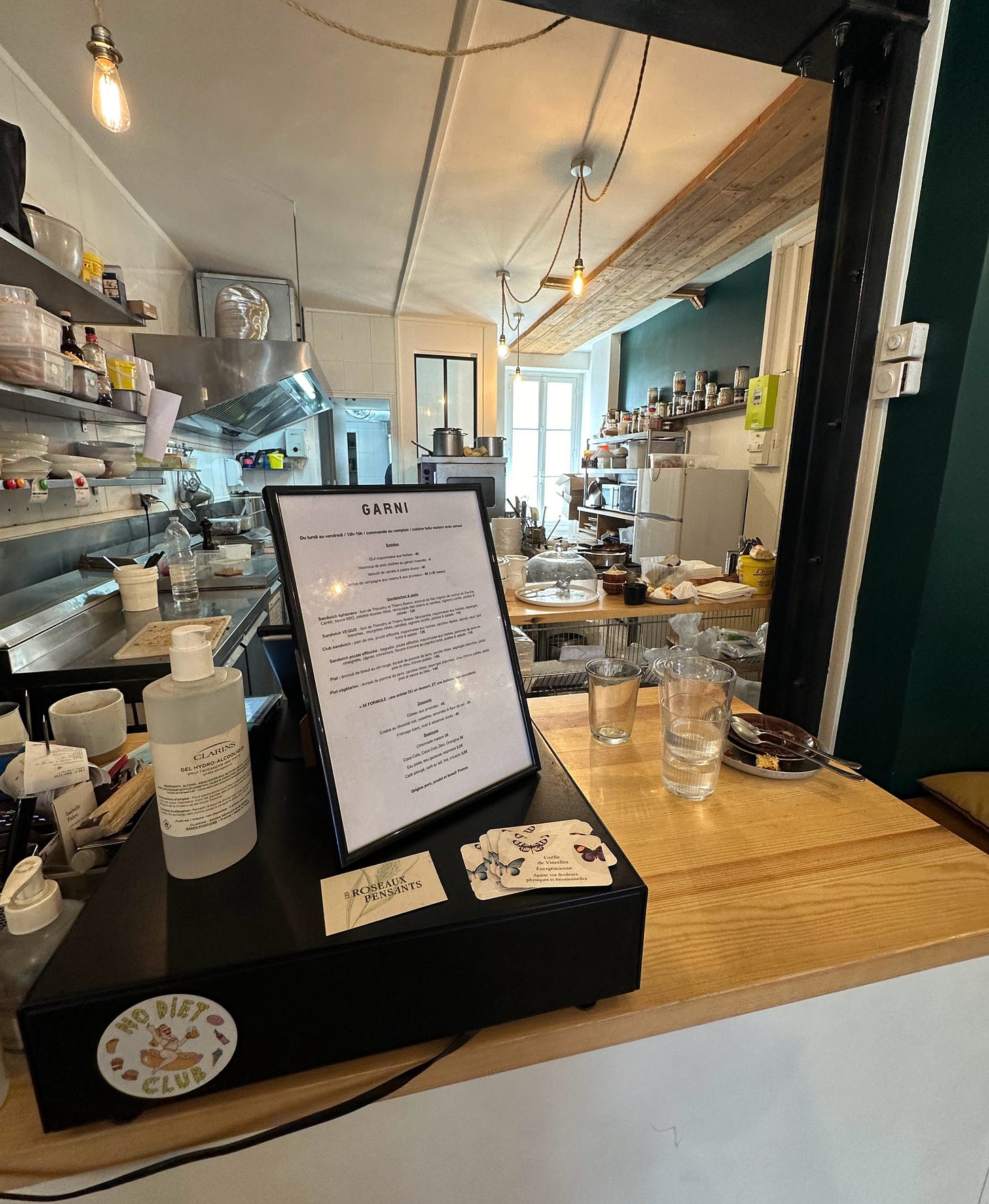 Ce n’est pas dans mes habitudes, mais oui, il m’arrive de déjeuner à l’improviste dans des endroits inconnus. Petite recherche à 13h45 au hasard d’une course dans le 17ème arrondissement de Paris, et me voilà débarquant chez Garni aux alentours de 14h.