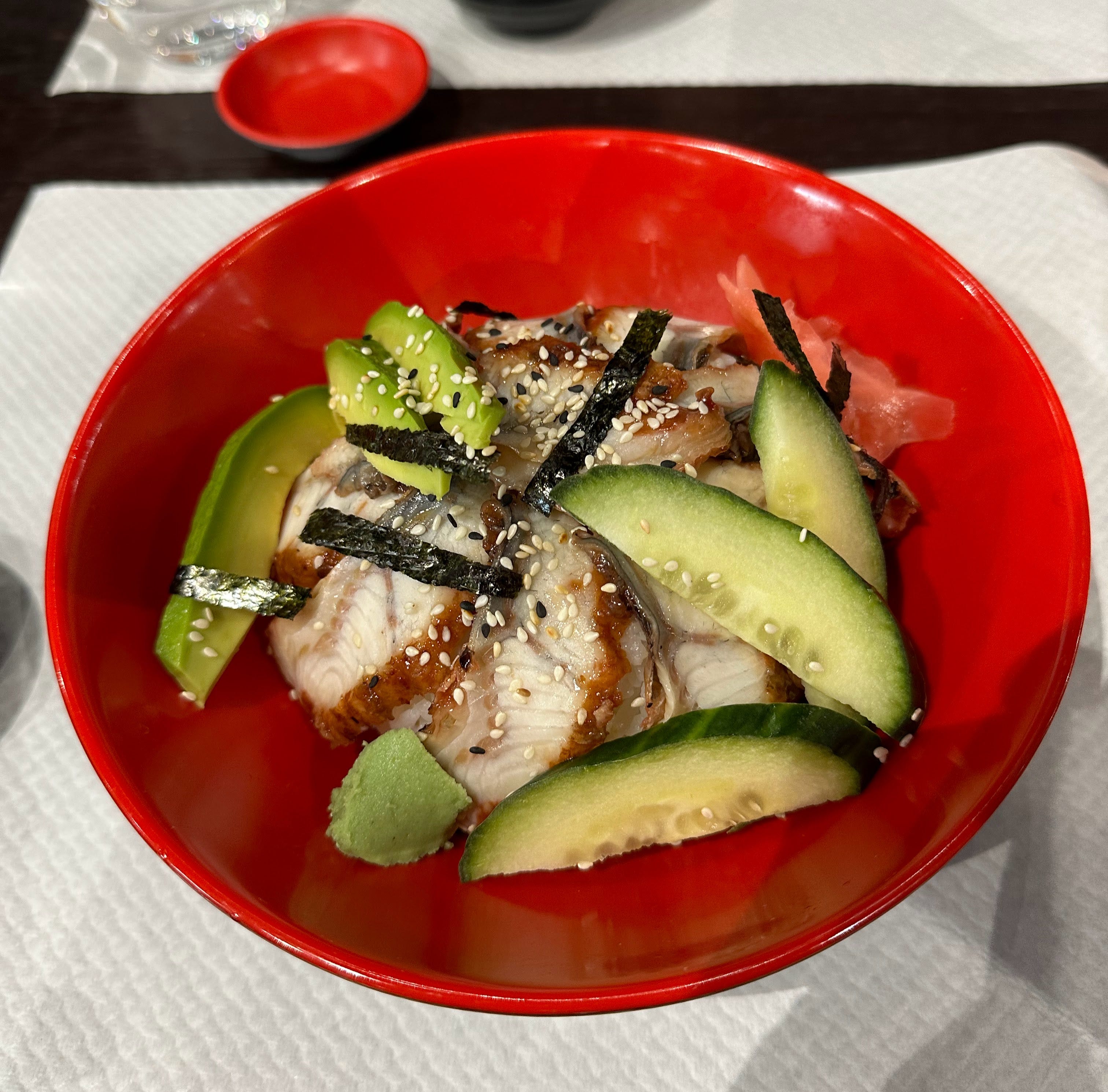 Pour près de 18 €, vous pourrez comme moi vous délectez du massacre de ce chirashi anguille. Si vous imaginiez une anguille grillée au parfum fumée et sucrée, légèrement caramélisée, vous êtes exactement à l’opposé. On est sur du fast-food de bas étage, lancé à la figure du client, sur un quelconque bol de riz.